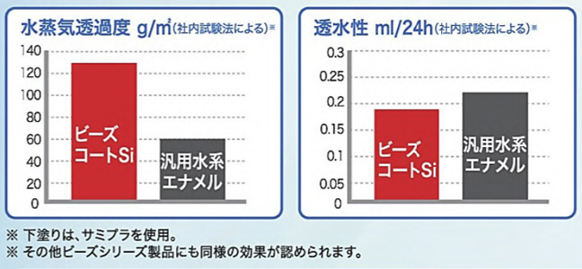 | ビーズウォールSi | シリコン | 3,510円 | 8~12年 | 耐久性の高い次世代型改修システムであるウォールバリアNBシステム対応の水性シリコン樹脂塗料で、専用の下塗り材と組み合わせることで、窯業系サイディングのシーリング目地部のブリードやひび割れを効果的に抑制できます。 |